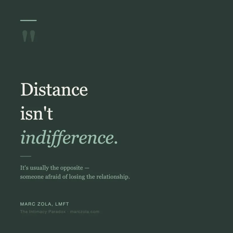 Distance isn’t indifference. It’s usually the opposite — someone so afraid of losing the relationship they don’t know what else to do.